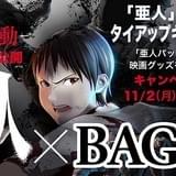 インターネットカフェ「BAGUS」では、11月2日から12月13日まで全店舗でキャンペーンを実施。特別料金プランの「亜人パック60分500円(税抜き)」を利用するたびに、同作の劇場鑑賞券、非売品映画ポスター、非売品オリシナル缶バッジのいずれかが当たるクジを引けるほか、「亜人パック」を3回利用すると映画オリシナルマウスパッドがプレゼントされる。