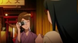 「デジモンアドベンチャーtri.」は、1999年に放送されたテレビシリーズ第1作「デジモンアドベンチャー」の続編にあたるシリーズ15周年記念作品。「第2章『決意』」は、高校生となった「選ばれし子どもたち」のうち、太刀川ミミと城戸丈を軸に物語が展開し、本編中では、太一たちが大江戸温泉でくつろぐシーンも登場する。