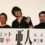 桜井画門氏の人気漫画を3部作で劇場アニメ化する企画の第2部「亜人 衝突」が5月6日、全国34館で公開され、主演声優の宮野真守が瀬下寛之総監督、安藤裕章監督とともに東京・TOHOシネマズ新宿で舞台挨拶に立った。あわせて、「亜人」テレビシリーズが10月から放送開始となることが発表され、宮野が「決定しました! イエーイ!」と声を上げ、観客と喜びを分かち合った。