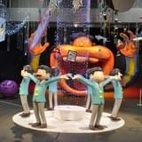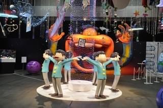 さまざまな立体物を展示した同展の目玉「松アート」エリアでは、天井にUFOやモビールが飾られ、宇宙感を演出。実物大の「6つ子立像」、フォトスポットにもなる「巨大ダヨーン」、UFOに吸い込まれそうな6つ子とイヤミといっしょに「シェー」のポーズで写真を撮ることができる「トリックビジョン」、本編第18話「逆襲のイヤミ」で描かれた6つ子たちのレースを再現した「主役争奪ジオラマ」などが設置されている。さらに、冷凍マグロを叩いてストレス発散度を計測できるアトラクション「トト子の冷凍マグロアタック」、自由にメッセージを記載できる寄せ書きコーナーもあり、「松アート」エリアのみ撮影自由となっている。