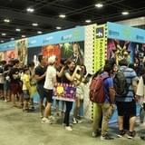 11月26日、午前9時30分に2日目がスタートしました。土曜日ということもあり大賑わいで、会場への行列はゆうに100メートル超。筆者も並びましたが、展示場入口が見えるまで30分ほどかかりました。来場者の大部分は中華系シンガポール人で、同国独特の英語(シングリッシュ)が飛び交っていました。赤道付近の国なだけに熱気ムンムン。目を爛々と輝かせて期待に胸躍らせる姿は、世界のアニメファン共通です。しかし展示場が割と狭いことに加え、入場時のバーコード認証で立ち止まる必要があるため、来場者の“開幕ダッシュ”の勢いは日本ほどではなかったです。