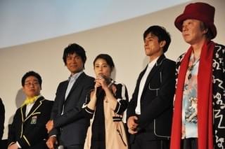 試写会では、上映前に舞台挨拶が行われ、ココネ役の高畑充希をはじめ、佐渡モリオ役の満島真之介、森川モモタロー役の江口洋介、渡辺一郎役の古田新太、雉田役の前野朋哉、志島一心役の高橋英樹とメインキャストに加え、神山監督が登壇した。神山監督は「キャストのみなさん、3年間という製作期間を支えてくれたスタッフのおかげで、ようやくその結晶でもある作品を見てもらえる」と製作を振り返り、「早く見てもらいたいという気持ちと不安な気持ちがありますが、こんなに緊張しているのは久しぶりです」と胸中を明かす。また、完成した同作を見たという高畑は「泣きそうになったり、鳥肌が立ったり、感情が忙しい映画」、満島は「このキャストの濃さからどうやってできたんだろうというくらい、優しくて家族を大切にしたい作品」と作品を紹介した。