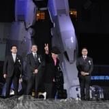 さらに「機動戦士ガンダム」の総監督で、シリーズの原作者としてもクレジットされている富野由悠季氏が登壇。富野氏は「いちアニメ作品からできたガンダムが実寸大で立ち、みなさんが見ることで作り上げられた会場の雰囲気などが持つ力が、ガンダムというものをこのような形にさせてくれたのではないかと思います」と今プロジェクト振り返り、「次のガンダム(ユニコーンガンダム立像)も立ち上がります。そしてさらに、次のガンダムも立ち上がるらしいです」と未発表の新展開をも匂わせた。最後は「若い方々に、次のもっとすばらしい作品を作ってもらえたらとても嬉しい」と期待を語り、セレモニーの幕を引いた。