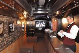 今回オープンした「BAR魔の巣」では、ラッピングバスに作中のバーの外観と内装を再現。カウンターではマスターがグラスの手入れをしており、喪黒福造の名刺を作成できる「笑ゥ名刺ジェネレーター」、ココロの中に潜む欲望を暴く「ドーン!! 危険度診断」といったアプリが楽しめる。なお「笑ゥ名刺ジェネレーター」を体験すると、国際ビール大賞を受賞した神奈川・厚木市の地ビール「サンクトガーレン」の「ゴールデンエール」を使用した喪黒福造ラベルのビール(未成年にはオリジナルソーダ)が、「ドーン!! 危険度診断」をプレイするとおつまみとして、非売品のおかきがもらえる。そのほか、車内にはアニメの本編カットが壁面に飾られており、設置されたスクリーンではアニマックスの映像が上映される。