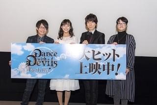 11月4日、劇場アニメ「Dance with Devils-Fortuna-」初日舞台挨拶が東京のシネ・リーブル池袋で行われ、立華リツカ役の茜屋日海夏、立華リンド役の羽多野渉、マリウス役の豊永利行、監督の吉村愛が登壇した。