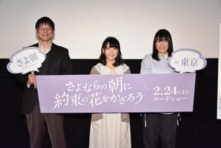 脚本家の岡田麿里が初監督を務めた劇場アニメ「さよならの朝に約束の花をかざろう」の完成披露試写会が2月13日、東京・新宿バルト9で行われ、主人公マキア役の石見舞菜香、岡田監督、アニメーション制作を手がけるP.A.WORKSの社長で、プロデューサーを務める堀川憲司氏が舞台挨拶に登壇。製作の裏話や、現在の胸中を語った。