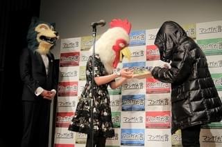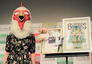 100人の選考員が参加した本年度のマンガ大賞は、過去最多252作品のなかから、12のノミネート作品に絞り込まれた。みごと大賞に輝いた板垣氏は、担当編集者とともに、「BEASTARS」のキャラクターの被り物をつけて登場。場内が笑いに包まれるなか「この格好と同じように変な漫画なので、受け入れてもらって驚きです」とユーモアたっぷりに語った。