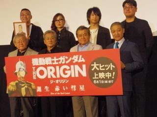 5月6日、新宿ピカデリーで、「機動戦士ガンダム THE ORIGIN 誕生 赤い彗星」公開2日目舞台挨拶が開催された。安彦良和総監督を筆頭に、シャア・アズナブル役の池田秀一、デギン・ソド・ザビ役の浦山迅、ギレン・ザビ役の銀河万丈、ドズル・ザビ役の三宅健太、キシリア・ザビ役の渡辺明乃、ガルマ・ザビ役の柿原徹也、サンライズの谷口理プロデューサーが登壇。主人公であるシャアと、ジオン公国を独裁する血族・ザビ家のキャストが、はじめて一堂に会した。