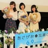 高嶋ひろみ氏の人気漫画をアニメ化した「あさがおと加瀬さん。」の完成披露上映会が5月17日、東京・新宿バルト9で開催され、キャストの高橋未奈美、佐倉綾音、木戸衣吹が出席した。