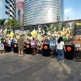 会場周辺のマリーナテラスには、「ドラゴンボール ノースアメリカツアー2018」と題した特設エリアを展開。天下一武道会をはじめ、スカウターやくりきんとんが用意されたフォトブースでの記念撮影を楽んだり、カードゲームニ興じたりと、英語だけでなく、スペイン語も飛び交い、年齢も老若男女問わず笑顔をみせていた。