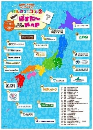 ビジュアルの先行公開は、これまでに「けものフレンズ」とコラボレーションした、栃木・那須どうぶつ王国、埼玉・東武動物公園、千葉市動物公園、愛知・豊橋総合動植物公園(のんほいパーク)、京都市動物園のほか、東京・サンシャイン水族館や横浜・八景島シーパラダイスなど全24施設で実施される。