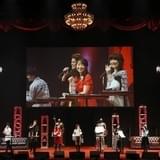 赤を基調としたパーティ会場風のステージに、スポットライトに照らされながらキャスト陣が華麗に登場。だが福山が、「紳士じゅくじょ……」と最初の挨拶を噛み、「いい“スベリ”出しになりましたね」とダジャレ交じりに開き直ると、場内は一気にバラエティモードに。共演陣も「パーティであまった料理はすべてタッパーで持ち帰ります」(杉田)、「今日は、役にちなんでおしとやかにいきたいと思います(笑)」(戸松)と軽快な挨拶で盛り上げる。