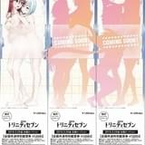 今回の発表にあわせ、劇場窓口などで、背景スタンド付きペーパーミニスタンディ「トリニティ・ペーパースタンディ」が付属する前売り券が発売。スタンディのキャラクターは、発売中の第1弾がリリス、ミラ、アキオの3人で、12月27日の第2弾、1月27日発売の第3弾の種類すべてを並べると、メインキャラクターたちのシャワーシーンを描いた1枚のイラストが完成する仕様になっている。価格は各1500円(税込み)。
