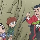 1993年から放送されている長寿番組「忍たま乱太郎」は、忍術学園に通う忍者のたまご・乱太郎、きり丸、しんべヱたちが、一人前の忍者を目指して奮闘する姿を描く人気アニメ。コラボ回「忍者右左ヱ門の段」では、乱太郎、きり丸、しんべヱが、巨大イカに化けた忍者を川で釣り上げたことから物語が始まる。3人は、釣った忍者が狙っているという巻物を持つ右左ヱ門に協力しようとするが……。