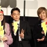 この日はサプライズ抽選会が行われ、胸のイナズママークが光るTシャツや、全長2.3メートルのシャザム立像など豪華プレゼントが続々登場。なかでもアフレコ時に佐藤二朗が来ていたサンタ服という衝撃アイテムに、平野が「当たった人、申し訳ないな」と思わず呟き、すかさず菅田に突っ込みを入れられていた。