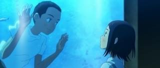 芦田:序盤、琉花が水槽のなかにいる海君に最初に会うところが、とても気にいっています。水槽の水や魚がとてもきれいに描かれていて、音楽も盛り上がり、海君という不思議な存在に出会った感じがでていて。琉花が、自分では気がついていないけれど高揚していることが伝わってくるシーンだと思います。