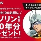 特設サイトと“EneKey”公式Twitterでは、7月31日まで、ガソリン1年分相当の普通為替16万円を総計100人にプレゼントするキャンペーンを実施中。特設サイトには、ガソリンの給油ノズルを手にしたシャアのビジュアルなども掲載されている。