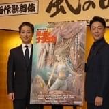 会見には鈴木氏に加えて、菊之助と七之助、演出を手がけるG2(新作歌舞伎「NARUTO ナルト」「舞台『ガラスの仮面』」)、松竹の安孫子正代表取締役副社長が出席した。鈴木氏の言葉を受けた菊之助は「武者震いしております」と背筋を伸ばし、「生みの苦しみを味わいながら、ジブリ作品に寄り添い、歌舞伎ファン、ジブリファン双方の皆さまにご納得いただけるよう、ラグビー日本代表ではありませんが、ワンフォーオール、オールフォーワンの精神で、一座が力を合わせて作り上げていく」と意気込みを語った。