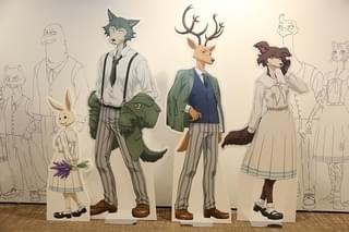 「BEASTARS」展では、登場人物の設定や等身大キャラクターを描いた壁面イラストによる身長対比などが展示されるほか、レゴシ、ハル、ルイ、ジュノといった登場キャラクターの等身大スタンディが設置されている。オープン前日には内覧会が行われ、同作のアニメーション制作を担当するオレンジの和氣澄賢プロデューサーが同展の見どころを紹介。第2話から流れる、コマ撮りアニメによるオープニング映像の撮影に用いられたレゴシとハルの人形をお披露目する「オープニングアニメーションセット」について触れ、監督を「四畳半神話大系」に参加したサイクロングラフィックスの加藤道哉に依頼したことを明かし、「毛並みなどにもこだわっています」と自信のほどを語った。YouTubeでは、オープニングのメイキング映像(ショートバージョン)も公開中。