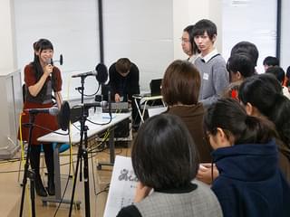前半では、ヒューマンアカデミー在校生の協力のもと、17年にテレビアニメ化された「まけるな!! あくのぐんだん!」の映像を用いたアテレコセッションを実施。3チームのアテレコを見た徳井は、セリフが途切れるタイミングをキャラクターの動きを見て確認するようアドバイスしたり、方言が話せることは地方出身者の大きな強みになるといった現役声優として現場の声を届けた。