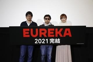 発表は、12月23日に東京・新宿バルト9で開催された舞台挨拶付き「ANEMONE」上映イベントで行われた。京田知己監督、ボンズ南雅彦プロデューサー、エウレカ役の名塚佳織が登壇し、「EUREKA」の特報映像を上映。南は「ハイエボリューション」シリーズを、これまでにさまざまな舞台で描いてきた「レントンとエウレカのストーリーの集大成」と位置づけ、その最終作となる「EUREKA」が「『エウレカセブン』のひとつの完結」になることを明かした。京田監督は「エウレカという女の子の話をちゃんとやらないと、この作品、このシリーズは終わらないので、彼女に寄り添そうかたちのドラマを3本目ではやりたい」と同作のストーリー展開を示唆した。