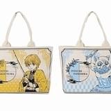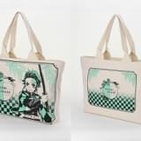 同商品は、A3サイズまで入れられるトートバック。主人公・竈門炭治郎(かまど・たんじろう)をはじめ、我妻善逸(あがつま・ぜんいつ)、嘴平伊之助(はしびら・いのすけ)、冨岡義勇モデルの全4種類が用意されている。表面にはそれぞれのキャラクターが大きくプリントされており、作中で鬼が嫌う藤の花、キャラクターをイメージした模様(炭治郎モデルでは彼の着る羽織)を背景に、花のモチーフや霞文様で飾った円窓をイメージカラーであしらったデザインに仕上げられている。裏面はキャラクターなしのシンプルなもので、肩にもかけやすい長めの持ち手とあわせて、普段使いもしやすくなっている。
