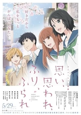 咲坂伊緒氏の少女漫画を劇場アニメ化する「思い、思われ、ふり、ふられ」に、堀江瞬、佐倉綾音、井上喜久子、田中秀幸、久川綾、井上和彦の出演が決定した。堀江と佐倉は、ヒロインである市原由奈(CV:鈴木毬花)と山本朱里(潘めぐみ)の同級生役を担当。井上喜久子と田中、久川と井上和彦は、それぞれ朱里と由奈の両親を演じる。
