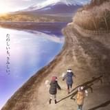 2種のティザービジュアルは、それぞれ夜と朝の一場面を切り取っている。夜バージョンはキャラクターたちが湖近くの展望台から夜景を見渡すシーンに「さみしいも、たのしい。」という言葉がそえられ、朝バージョンは逆さ富士が映る湖畔を駆けるキャラクターたちのそばに「たのしいも、さみしい」ときざまれている。
