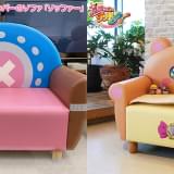 チョッパーのソファ「ソッファー」は、チョッパーの帽子と同デザインの背もたれや、角をイメージした肘かけ、足の蹄(ひづめ)をプリントで再現したイス脚、作品ロゴがプリントされたメタルプレートなどが特徴となっている。