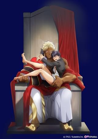 そのほか、玉座に座ったカイウスが、晃一を抱きとめる姿を描いたアニメ版キービジュアルも公開。放送開始に先駆けて6月28日深夜1時からTOKYO MXでは「巨人族の花嫁特番(仮)」がオンエアされる。