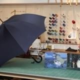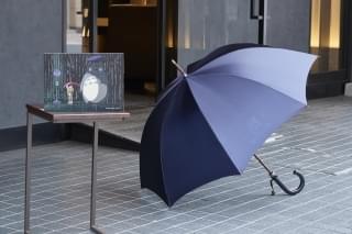 商品モデルになっているのは、「となりのトトロ」の劇中でトトロがサツキからもらった雨傘。映画の舞台となった昭和30年前後に主流だった「8本骨長傘」を採用し、大中小のトトロがワンポイントであしらわれている。生地は創業150年を超える老舗メーカー「槙田商店」の特注生地を採用。防水、撥水、UV加工が施され、サテン織りの光沢が高級感を演出している。またハンドル部分は職人が一本一本塗装し、楓材の木目が浮き立つように仕上げることで劇中の傘の風合いを再現した。