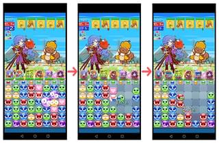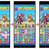 「ぷよぷよ!!クエスト」は、同じ色のぷよが4つくっつくと消えるという「ぷよぷよ」の基本ルールはそのままに、スマートフォン向けに最適化されたパズル+ロールプレイングゲームだ。今作では、上から落ちてくるぷよを任意の場所に移動させて積み上げていくのではなく、あらかじめ配置されたぷよを効率よく消し、消した色のぷよと同じ色のカードで相手チームを攻撃し倒していく。