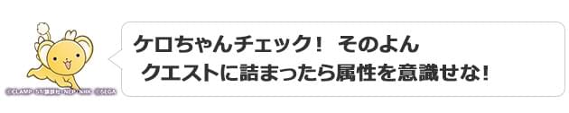 属性は赤、緑、青、黄、紫の5種類があり、赤は緑、緑は青、青は赤に強く、黄と紫は互いに弱点の関係となっている。不利な色の属性からのダメージは2倍、与えられるダメージも1/2に下がってしまうため、難易度の高いクエストではお互いの属性も意識することが大切だ。相手カードをタップすると、ロックオンして集中攻撃できるだけでなく、属性の相性も確認できるので攻撃前には確認しておくといい。