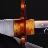公式監修のもと細部までこだわって開発される同商品は、杏寿郎の設定身長から算出した全長約950ミリの刀身サイズ。刀身には「惡鬼滅殺」の文字が刻印され、炎の柄は部分的にパール塗装を重ねることで作中のイメージを再現している。また、ハバキはダイキャスト(金属)製で、柄も紐の縫い目を造形で表現するなど、質感までもが追求される。