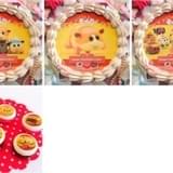 バレンタイン限定デザインのスイーツは、ホールケーキとマカロン6個セット。ホールケーキは、5匹のモルカーが重なり合った「モルカー集合」デザイン、モルカーたちが走る姿をとらえた「モルカーいっぱい」デザイン、のんびり屋のモルカー、ポテトがプリントされたバージョンの全3種で、ケーキのフルーツは黄桃かイチゴ、クリームはホイップクリームかチョコクリームから選ぶことができる。各4860円(税込)でサイズは5号(直径15センチ、高さ7センチ)。