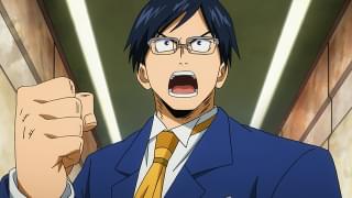 ヒーロー科1年A組の学級委員長で、ヒーロー一家に生まれ育ったエリート。品行方正で実直な性格を持つ。“個性”は、ふくらはぎに備わった器官によって、驚異的なスピードで走ることができる「エンジン」。