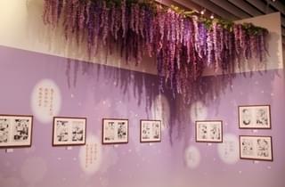 「伍ノ章 刻(とき)~千年の夜明け~」は、鬼舞辻と鬼殺隊の最終決戦を紹介。夜明けを目指した決死の戦いを多数の原画とともに振り返っている。炭治郎と鬼舞辻が対峙する迫力の空間を抜けると、クライマックスとなる「終章 継(つぐ)~幾星霜を越えて~」にたどり着く。そこに広がるのは、満開の藤の花と“物語の結末”。また、本展初公開の吾峠氏のイラストも展示されている。