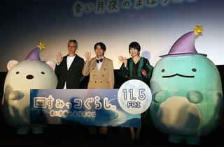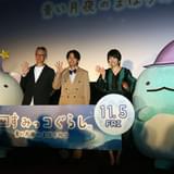 V6の井ノ原快彦と女優の本上まなみが10月22日、東京・築地の東劇で行われた「映画 すみっコぐらし 青い月夜のまほうのコ」のお披露目試写会で舞台挨拶に登壇した。