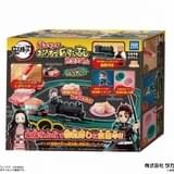 本商品は、3月に発売された玩具「超ニギニギ おうちで回転寿しベーシック」の「鬼滅の刃」バージョン。レールの上を無限列車が走り、列車が引く台車にお寿司を乗せて周回することで、自宅で回転寿司の気分を味わうことができる。付属の「炭治郎フィギュア」を無限列車にのせることで、作中のシーンを再現することも可能。お寿司を乗せる皿には炭治郎柄と禰豆子柄があり、細部まで「鬼滅の刃」の世界観が盛り込まれている。