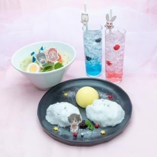 さらに「こどものおもちゃ」を表現した「紗南と羽山のオムライス」(1540円)、「まろちゃんのチョコマロンドリンク」(880円)や、「ナースエンジェルりりかSOS」をイメージした「りりか命の花パフェ」(1320円)、「ナースエンジェルりりかのワクチンソーダ(880円)」も販売。「満月をさがして」からは、「クトとめろこのねぎラーメン」(1540円)、「満月のまんげつチーズケーキ」(1540円)、「タクトのアップルビネガーゼリードリンク」(880円)、「めろこのピーチビネガーゼリードリンク」(880円)がラインナップされている。