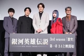 「銀河英雄伝説 Die Neue These」シリーズの最新作「銀河英雄伝説 Die Neue These 激突」の第一章完成披露上映会が2月23日に都内で行われ、ラインハルト・フォン・ローエングラム役の宮野真守、ヤン・ウェンリー役の鈴村健一、ユリアン・ミンツ役の梶裕貴、主題歌・テーマソングを歌うSennaRin、多田俊介監督が登壇し、同作の見どころなどを語った。