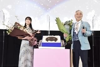 舞台挨拶の終盤には、2月15日で21歳になった丹生、2月22日に古希を迎えた尾形に、本作をイメージした花束がプレゼントされ、巨大な特製ケーキも登場した。尾形は「2月生まれはこういう商売、すごく向いてるんだよ。古希が言ってるんだから間違いないから」と、丹生にエールを送っていた。
