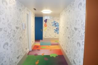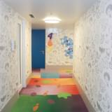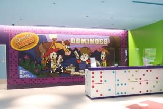 そしてエントランスをくぐり抜けると、そこは大きなパズルのピースを模した床の模様や、ゲームボードを描いた天井など、カラフルなおもちゃのモチーフで作られたロビーが広がっている。もちろんフロントデスクも「トイ・ストーリー」仕様。チェックインの時から映画の世界に浸ることができる。