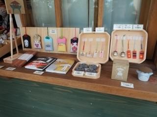 「どんどこ堂」のそばにある売店。「どんどこ堂」を模したキーホルダーのほか、おみくじやお守りなど、神社のようなオリジナルアイテムを取り揃えている。「どんどこ森」の山頂にやってきた記念に、おみやげを買うのも楽しそうだ。