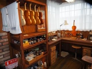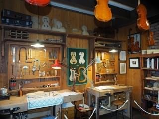 1階には、聖司が見習いとしてバイオリン制作を学んでいた工房が。楽器や道具などがずらりと並び、細部までじっくりと眺めることができる。1階と2階、両方にテラスがあり、愛・地球博公園を見渡すことができる。
