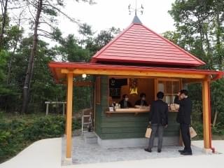 「どんどこ森」の入口にある休憩所。ほっと一息つける飲み物やお菓子のほか、傘、帽子、手ぬぐいなど、季節に合わせたアイテムが販売されている。
