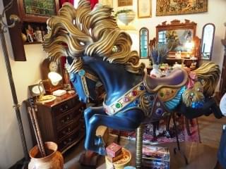 建物は、木造一部鉄筋コンクリート造の3階建て。来場者が2階から建物内に入ると、アンティークの家具や機械仕掛けのからくり時計、人形や木馬などが置かれており、懐かしく、どこか幻想的な雰囲気が漂う。なかでも雫が運命の出会いを果たすバロン、エルフの王女とドワーフの王が見つめ合う古時計など、印象的なアイテムの数々を展示している。