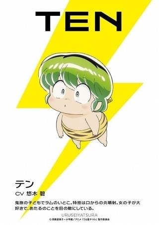 悠木が演じるテンは、ラムのいとこである鬼族の子ども。女の子が大好きで、口からの炎噴射を得意とする。旧テレビアニメ版では杉山佳寿子が声を担当した。テンは12話から登場する。