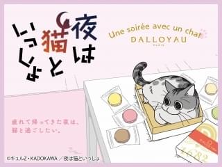さらに、洋菓子販売などを行うブランド「ダロワイヨ」とのコラボレーションも決定。コラボ商品として「キュルガショコラ缶(ブルー/パープル)」「キュルガマグカップ」が2月7日から期間限定で発売される。同ブランドの公式オンラインショップで予約を受け付け中(夜は猫といっしょ×ダロワイヨ コラボ特集ページ/https://www.dalloyau-japon.com/view/page/yoruneko-dalloyau2023 )