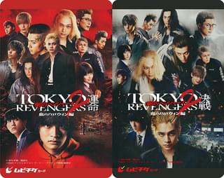 2部作合わせて全14種類となるキャラクター別ムビチケカード(税込1500円)は、2月3日に前編「運命」の「タケミチ/場地/千冬」、3月17日に「ナオト/ヒナタ/アッくん」、4月21日に後編「決戦」の「キサキ/半間/一虎」、5月19日に「マイキー/ドラケン/三ツ谷」のバージョンが一部劇場を除く上映劇場で発売。絵柄は選択可能だが(同じ絵柄は1人2枚までで購入制限)、売り切れ次第終了となる。